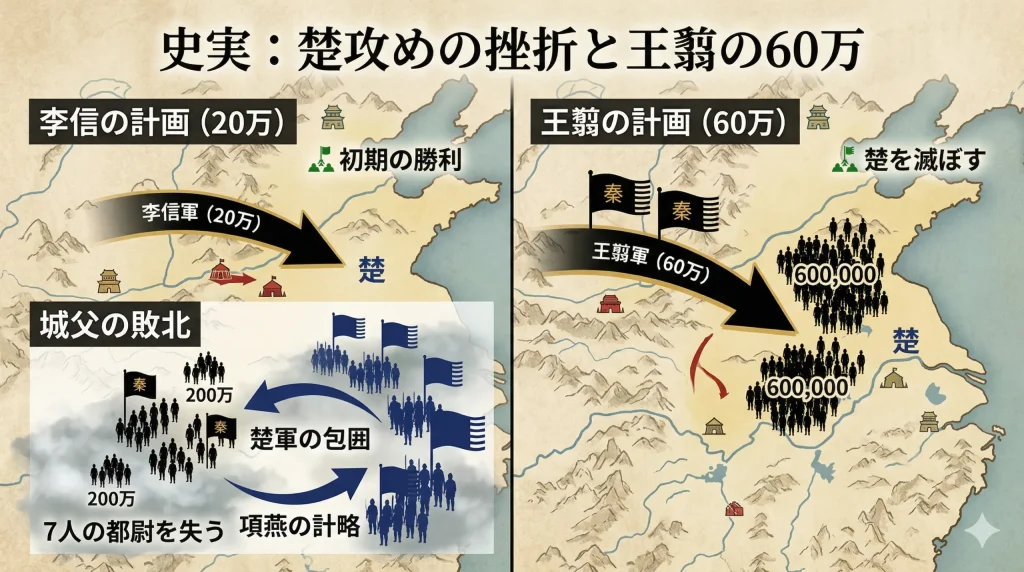 - 史実における李信の楚攻略での失敗とそこからの劇的な名誉挽回
