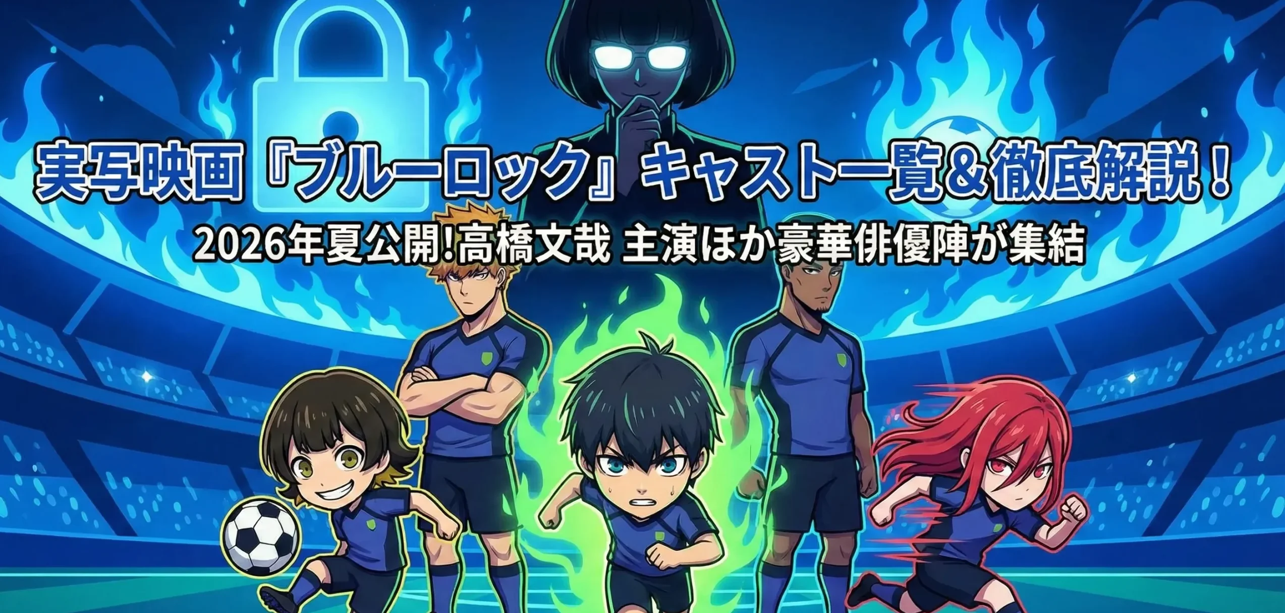 こんにちは。2026年夏の公開が発表されてから、ブルーロックの実写映画のキャスト一覧がどうなっているのか、気になって夜も眠れないという方も多いのではないでしょうか。累計発行部数5000万部を超えるあの大人気コミックが実写化されるということで、私自身も期待で胸がいっぱいです。主演の高橋文哉さんをはじめ、櫻井海音さんや高橋恭平さんといった、今をときめく豪華な顔ぶれが勢揃いしています。原作ファンとしては、あのエゴい世界観がどう再現されるのか、凪誠士郎や御影玲王、さらには糸師凛といった未発表キャラクターの配役予想も含めて、知りたいことが山積みですよね。この記事では、2026年8月7日の公開日に向けた最新情報や、ムビチケ前売り券の特典情報、さらには元日本代表の松井大輔さんが監修した本格的なサッカーシーンの舞台裏まで、ファンの皆さんが気になるポイントをすべてまとめました。これを読めば、映画公開がもっと楽しみになるはずですよ。