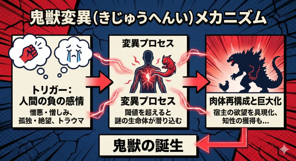 - 鬼獣の誕生に隠された人間の負の感情と変異のメカニズム