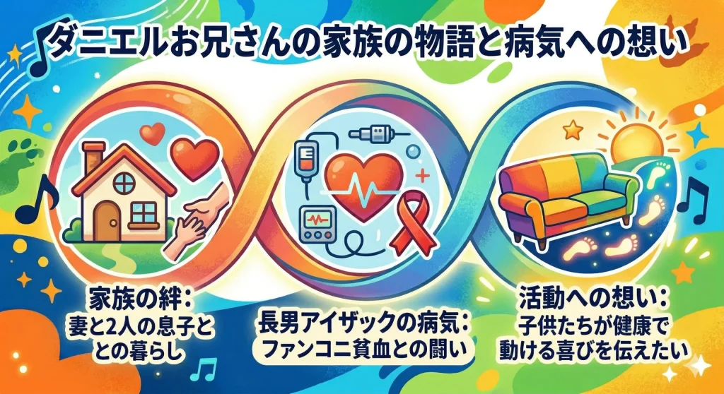 さらに、2025年末にはアイザックくんが癌の診断を受けたことが公表されました。ダニエルさんが動画の中で「ソファから立ち上がろう!」と子供たちに呼びかけ、全力で体を動かしているのは、実は「健康でいられることのありがたさ」を誰よりも知っているからなんです。病気と闘う息子を見てきた彼にとって、子供が元気に飛び跳ねている姿は何物にも代えがたい宝物。彼は自身のプラットフォームを通じて、臓器提供や骨髄ドナー登録(Be The Match)の重要性を訴え続けています。彼の活動は、単なるエンターテインメントではなく、命を守るための切実なメッセージでもあるんですね。