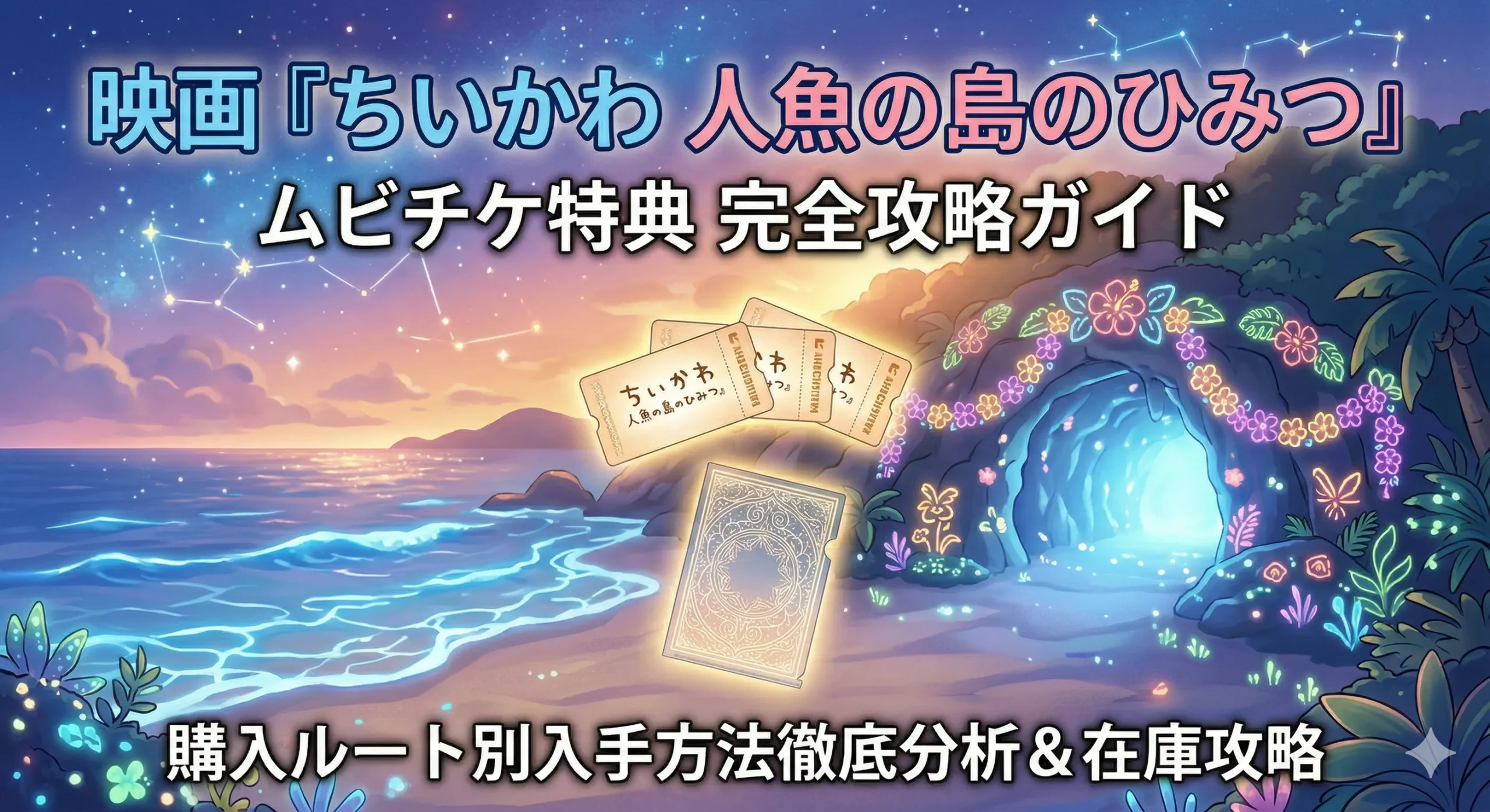 ついに映画ちいかわ人魚の島のひみつの公開日が2026年7月24日に決定しましたね。ナガノさんの描くあの独特な世界観、特に原作ファンからセイレーン編として愛されているエピソードがついにスクリーンで観られるなんて、今からワクワクが止まりません。でも、ファンとして一番気になるのはやはり前売券の特典ですよね。ちいかわのムビチケや特典のもらい方については、販売される場所やサイトによって内容がバラバラなので、初めての方だとどれを選べばいいか迷ってしまうかもしれません。せっかく楽しみにしていたのに、いざ買いに行ったら売り切れていたなんて悲しい思いはしたくないですよね。この記事では、私が個人的に徹底リサーチした情報をベースに、確実に欲しいアイテムを手に入れるためのコツや、各販売ルートごとの違いを詳しくお話ししていきます。これを読めば、ムビチケの買い方や特典の受け取り手順がスッキリ整理できるはずですよ。
