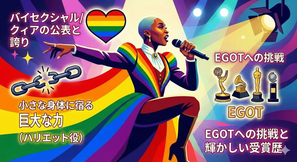 芸術という安全な場所で、キャラクターの感情を借りながら自己探求を行うことができたのは、彼女にとって非常に幸運なことだったのでしょう。舞台の上でセリーとして生きる時間は、シンシア・エリヴォという一人の女性が自分自身の真実を見つけ出すための旅でもありました。この経験があったからこそ、彼女は後に迷うことなくカミングアウトを行い、同じような悩みを抱える人々に向けた「言語」を提供することができたのです。彼女にとってのクィア・アイデンティティは、特定のパートナーによって定義されるものではなく、彼女自身の魂の成長の記録そのものだと言えますね。