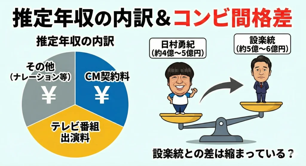 - 2026年時点の最新データに基づく日村勇紀の推定年収の内訳