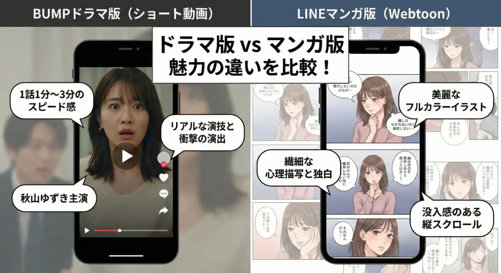 - BUMPドラマ版とLINEマンガ版のそれぞれで描かれる魅力の差