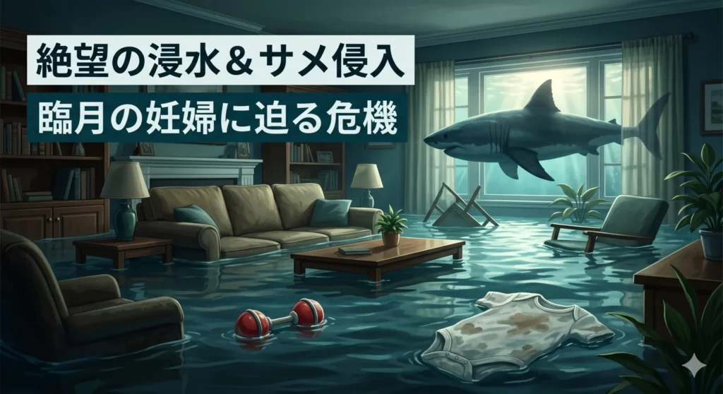 浸水した室内にサメが侵入する衝撃シーンの絶望的な恐怖