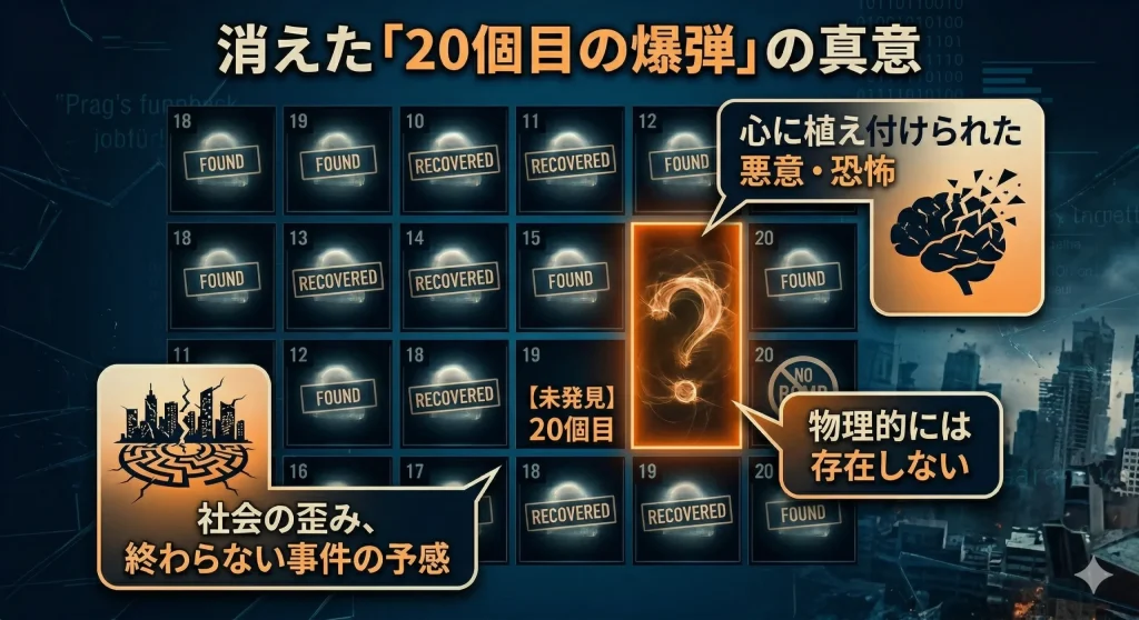 - 「20個目の爆弾」は物理的には爆発せず、関係者や視聴者の心に植え付けられた悪意として残り続ける。