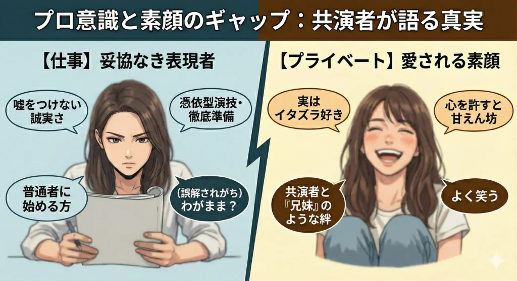 - 仕事仲間や共演者が語る「実は甘えん坊でイタズラ好き」という意外な素顔