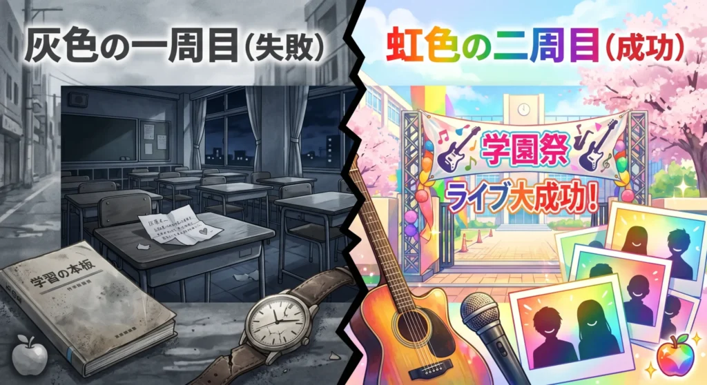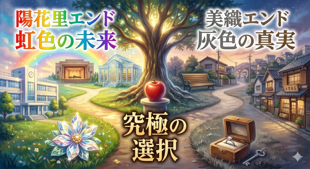 | 星宮陽花里 | 二周目の努力が報われ、新しい未来を自分の手で掴み取った証になる。 | 一周目の美織との幸福を完全に抹消し、美織を永久に不幸にする可能性がある。 |