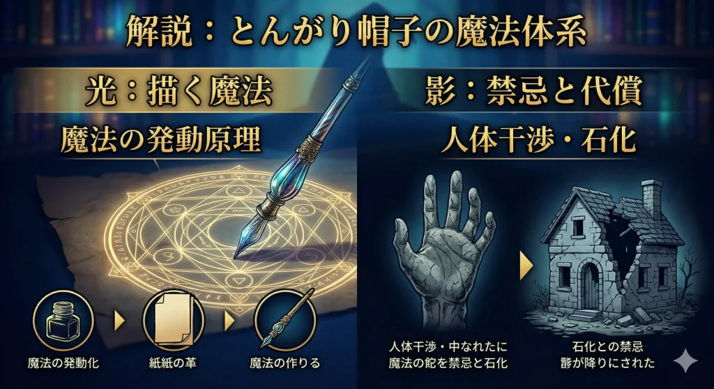 | 情報の隠匿 | 「描く魔法」の原理を秘匿 | 非魔法使いを悪用から守るが、格差を生む |