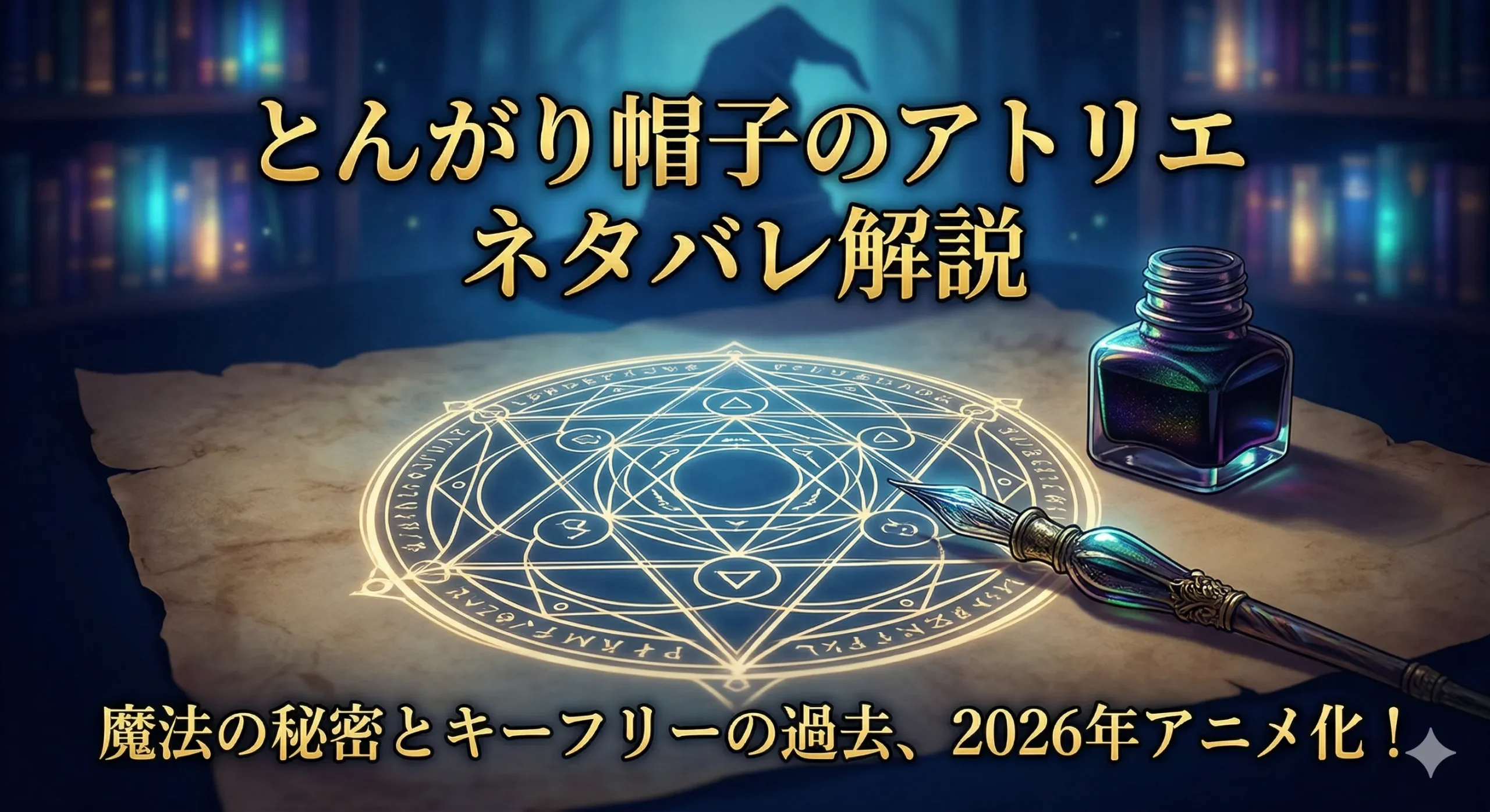 物語の中盤以降では、キーフリーの過去や右目の謎、そして謎の集団であるつばあり帽の正体といった核心に迫るエピソードが続々と登場します。クスタスやダグダのネタバレに関わる悲劇的な展開や、最新の単行本であるとんがり帽子のアトリエの15巻のその後の動向など、読者が知りたいポイントは山積みですよね。この記事では、私が作品を読み解く中で感じた驚きや考察を交えながら、最新のアニメ化情報まで徹底的に深掘りしていきます。最後まで読んでいただければ、アトリエの世界がもっと鮮明に見えてくるはずですよ。