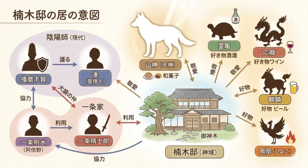 物語に緊張感を与える存在として避けて通れないのが、陰陽師の名門・一条家です。彼らの目的をネタバレすると、端的に言えば「湊という超常的な戦力を手中に収め、一条家の権威と影響力を拡大すること」です。現代の陰陽師界は、純粋な霊力だけでなく、政治的な力関係も複雑に絡んでおり、一条家はその頂点に立とうと画策しています。彼らにとって、湊の「書くだけで護符になる能力」や「無条件の土地浄化」は、喉から手が出るほど欲しい強力な武器に見えているわけです。