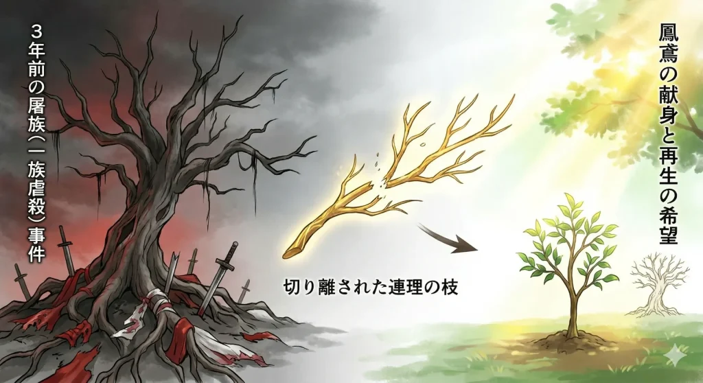 霖川族の象徴である神樹を蘇らせるには、連理の枝の力を元に戻すだけでは足りませんでした。そこには、純粋な愛の力と、生命の等価交換が必要だったのです。鳳鳶は、自分が一族の滅亡を食い止められなかった(と深く責任を感じていた)ため、自らの命を捧げて木を蘇らせようとします。彼女は愛する赫連曦と我が子のために、自分を犠牲にすることに一切の迷いがありませんでした。この「与える愛」の極致が、枯れ果てた大地に奇跡を起こします。
