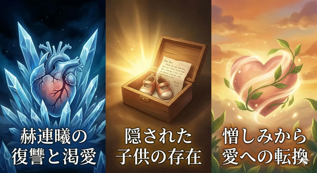 - 物語の核心である子供の存在と再会がもたらす感情の爆発