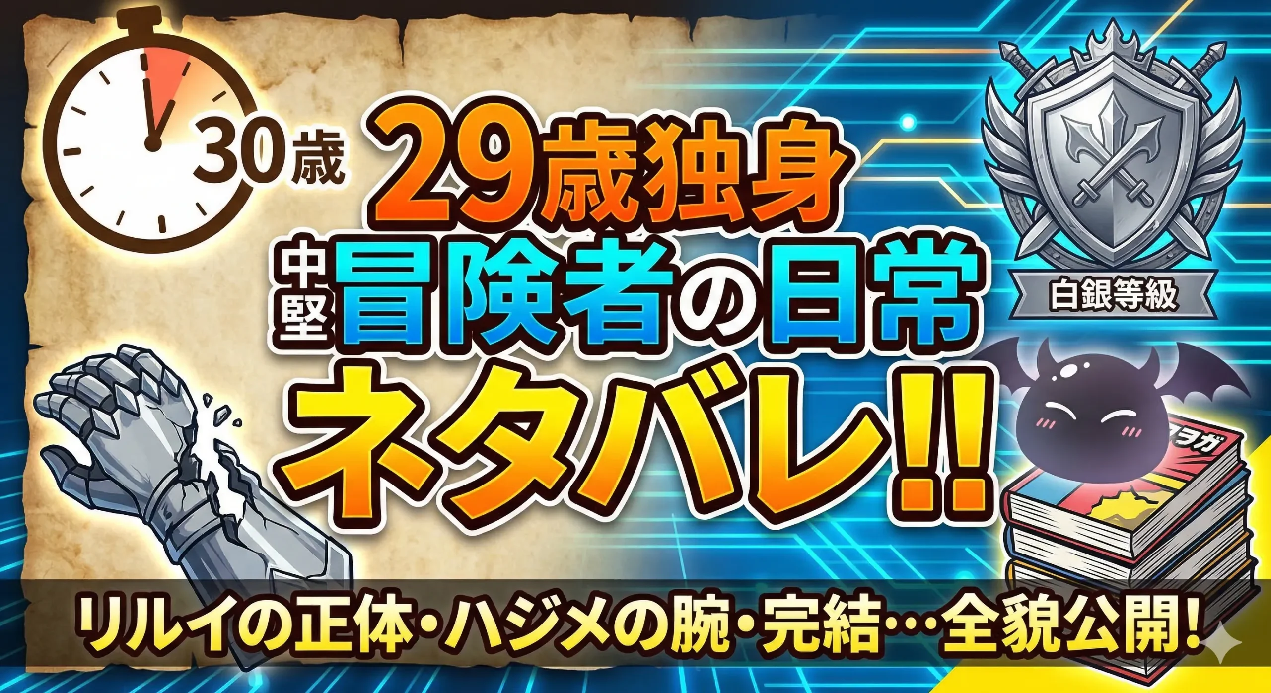 こんにちは。今回は、地味ながらも熱い生き様が多くの大人の心に刺さる漫画、29歳独身中堅冒険者の日常のネタバレ情報を深掘りしてお届けします。最強でも最弱でもない、絶妙な「中堅」という立ち位置で戦うハジメ。彼がダンジョンで救った少女リルイの正体は何なのか、そして物語がいつ完結を迎えるのか、気になっている方も多いですよね。特に5巻で描かれたハジメの腕を巡る悲劇や、最新の21巻で展開される悪夢の主編など、見どころが満載です。この記事を読めば、中堅冒険者が辿り着く結末や、2026年から始まったアニメ版の最新情報まで完全に把握できますので、ぜひ最後までじっくり読んでいってくださいね。