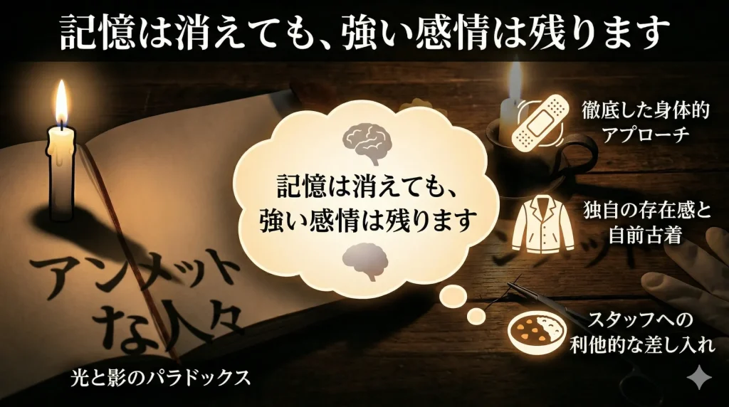 - アンメットは、記憶は消えても強い「感情」が人を繋ぐことを証明した傑作である