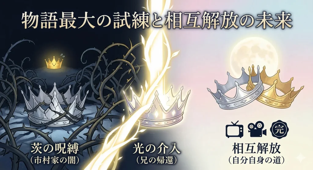 ここからは、現在進行形で描かれている最新話の核心部分、そして多くのファンが気になっている「完結へのシナリオ」について、深く切り込んでいきます。特に市村家の崩壊と再生、そして2026年のメディアミックスの動向は、これからの作品理解に欠かせないポイントですよ。