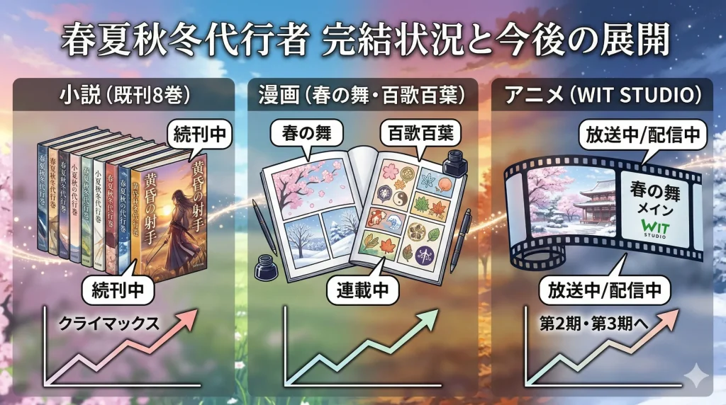 • 原作小説『春夏秋冬代行者』の最新巻までの進捗と完結の有無