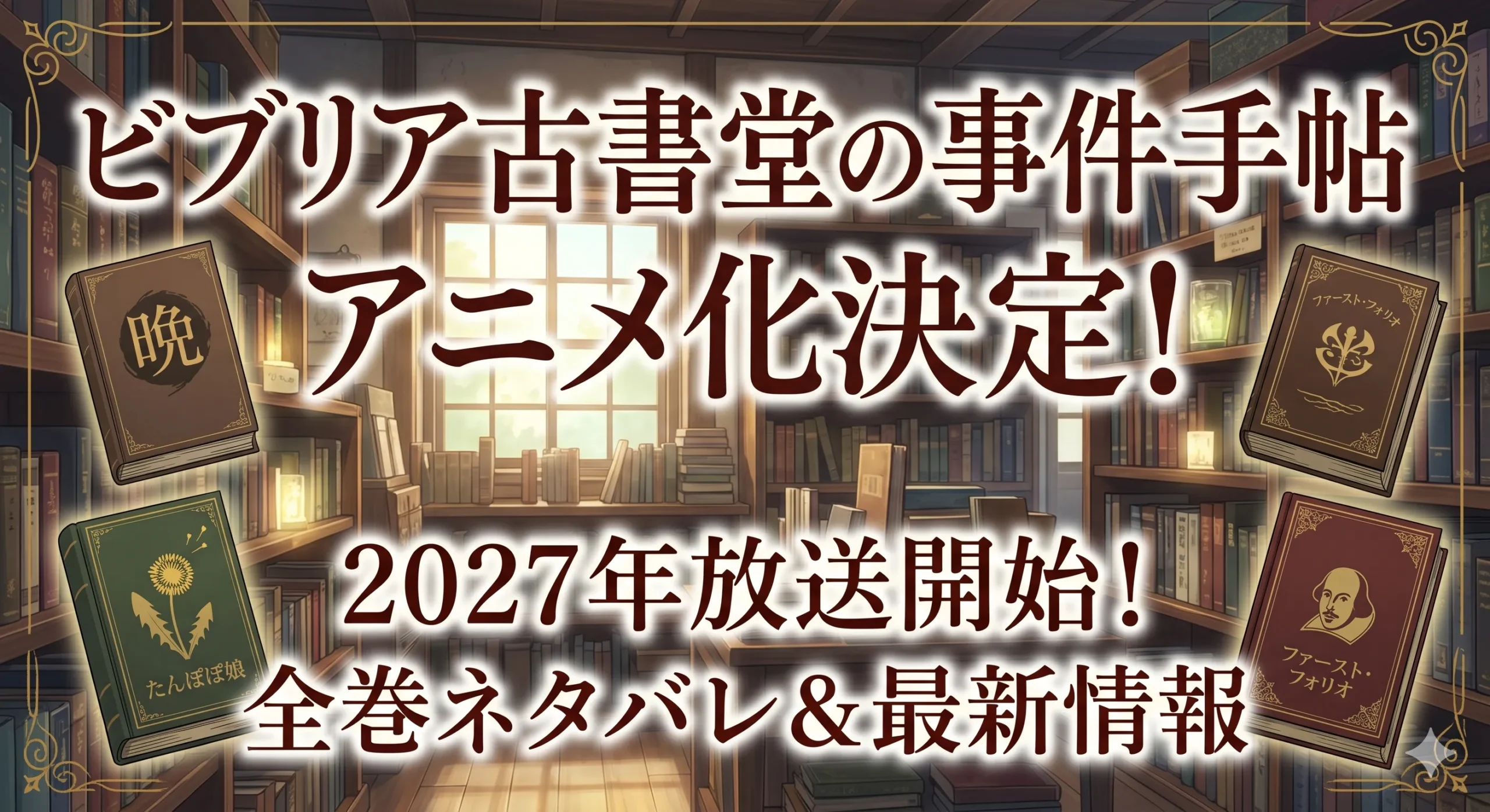 さて、ここまでたっぷりとお伝えしてきましたが、いかがでしたでしょうか。ビブリア古書堂の事件手帖のアニメ化は、2011年の刊行から15年という長い年月を経て、ようやく私たちが理想とする形で実現しようとしています。2027年の放送日に向けて、今から期待で胸がいっぱいになりますよね。制作のCloverWorks、主演の明智璃子さんと武内駿輔さん、そして監督の神戸守さん。これほどまでに完璧な布陣が揃ったのは、ひとえに三上延先生が15年間、誠実に物語を紡ぎ続けてきた結果だかなと思います。