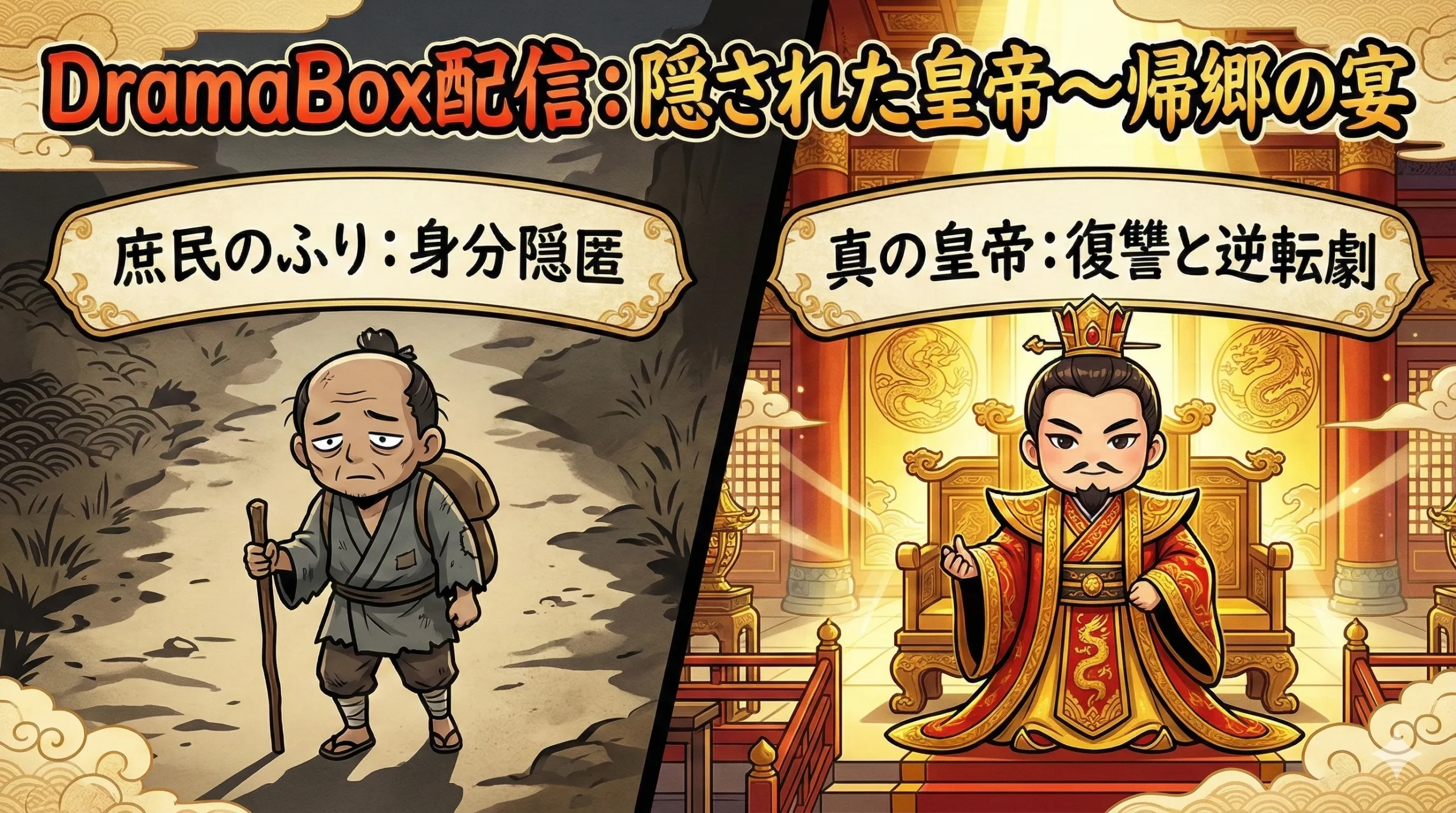 『隠された皇帝〜帰郷の宴』を最後まで見て、「あ〜面白かった!次は何を見ようかな?」とロスになっている方へ。DramaBoxには、似たような「スカッとする逆転劇」を楽しめる名作が他にもたくさんあります。ここでは、本作のファンなら絶対ハマる、おすすめの2作品をピックアップしました。どちらも「真の姿を隠した強者」というテーマが共通しており、期待を裏切りません。