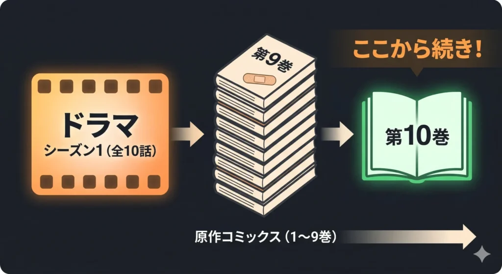 - ドラマの続きは原作漫画の第9巻後半・第10巻から読める