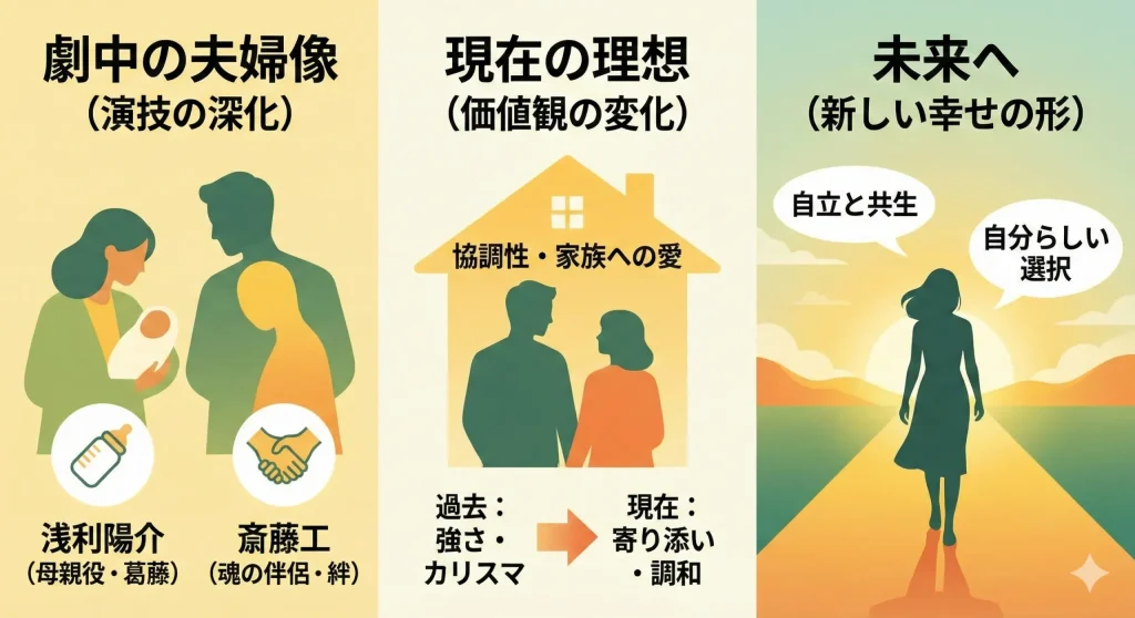 - 劇中での夫役俳優(浅利陽介・斎藤工など)との演技が、現実の結婚像への期待を高めている