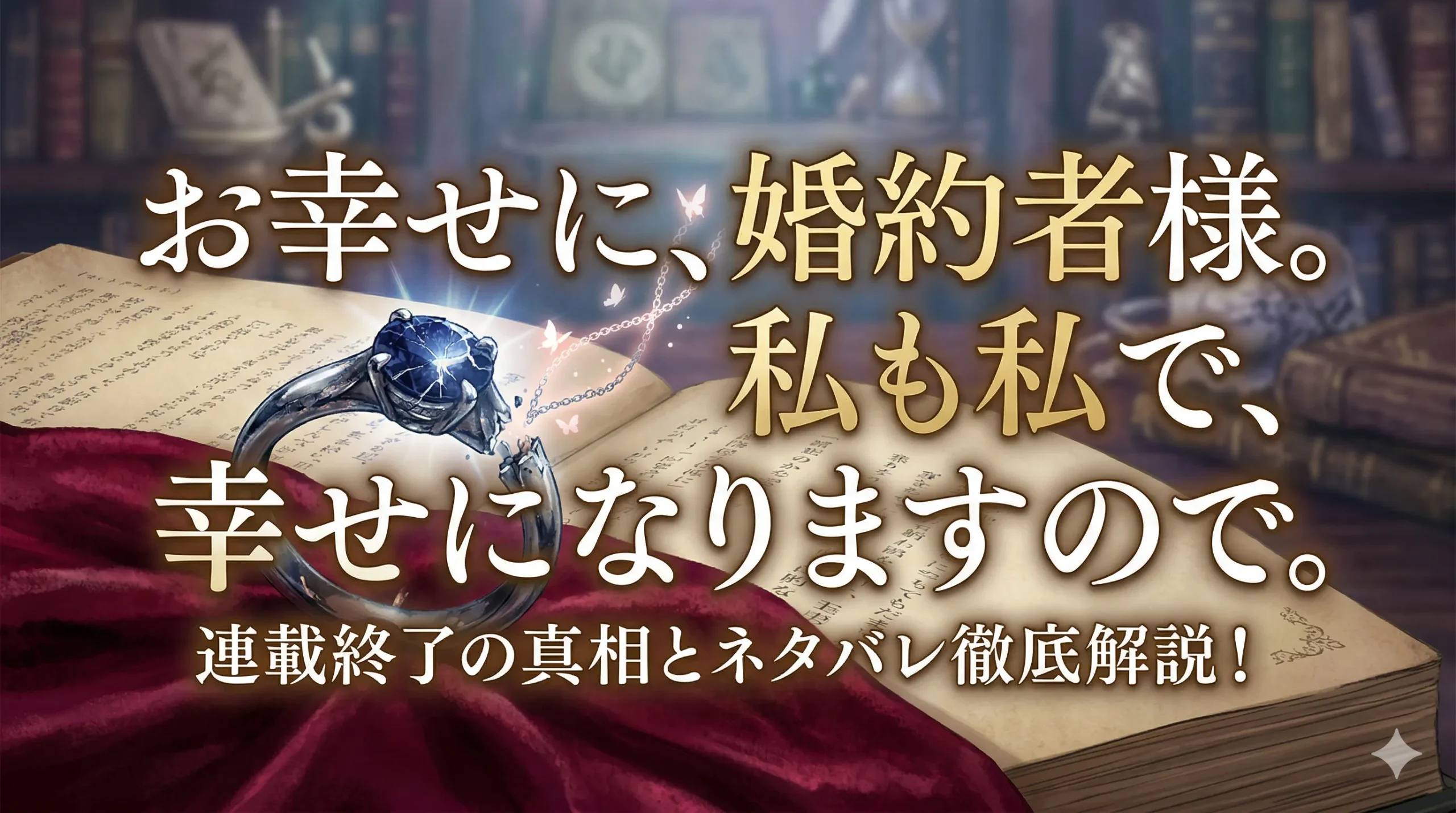 この作品、実は最近「連載終了」という不穏なキーワードが飛び交っていて、ファンの方々の間では「え、完結しちゃったの?」「それとも打ち切り?」と不安な声が多く上がっているんですよね。特にお幸せに、婚約者様。私も私で、幸せになりますので。の連載終了やネタバレに関する情報を探している読者の方は、物語がどうなったのかという結末はもちろんですが、なぜ漫画版が急に読めなくなったのかという理由についても、スッキリした回答を求めているのではないでしょうか。