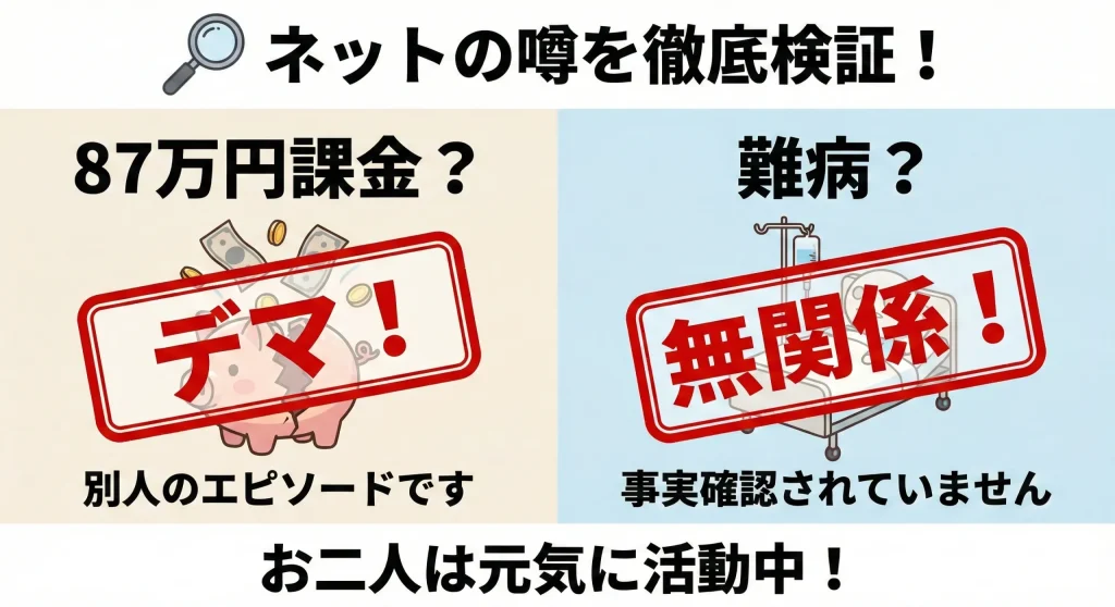• ネット上で混同されがちな87万円課金や難病という噂の正確な出所